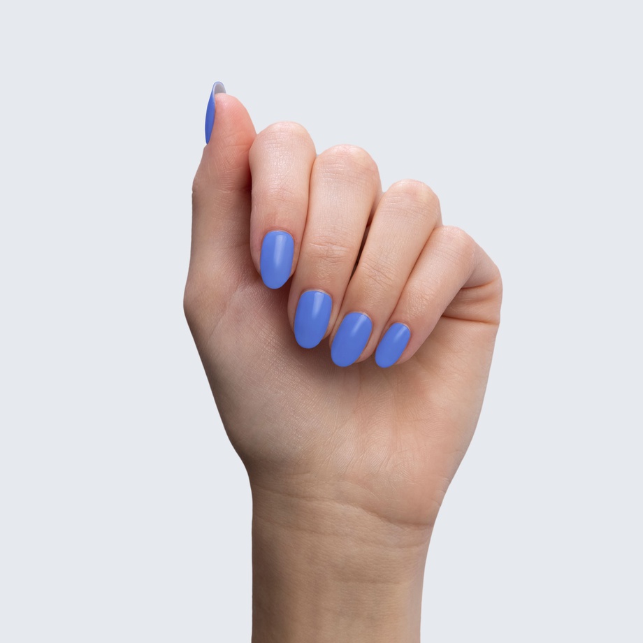 Periwinkle blue. Medium. Opaque. Cool undertone.